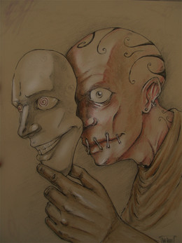 A rather young Phantom wallowing in his own barely bridled rage. This would be during the Persia period of Kay's novel, although, as I like to imagine it, Erik wore a full mask through his youth. As he grew into adulthood, he would have shed the emotional baggage of a full mask, which would be reminiscient of his horrible childhood, and adopted the unconventional half-mask. Therefore, Ta-da! Nutshell explanation, unifying two theories of the mask. let me stress again that this is just what I like to use for reason, not that it's the end-all, be-all backstory.Related content