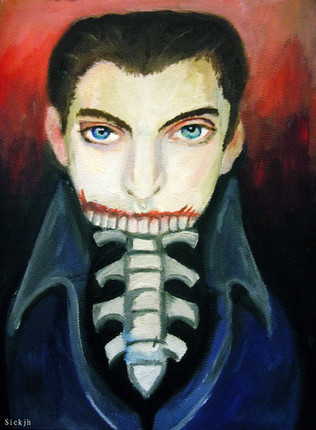 The colors and shading on this is just gorgeous. Well, as gorgeous as it can be with the subject matter. Although...his good side is rather hadsome. His lips look like yours.
