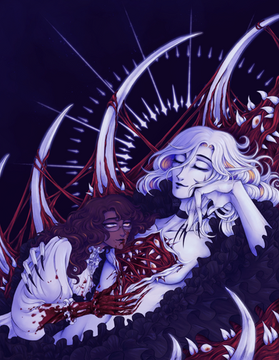 #blood #dark #demon #gore #gothic #guro #horror #macabre #monstergirl #oc #occult #red #body_horror #creepy_cute #limited_palette #yamikawaii #surreal