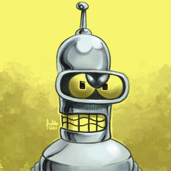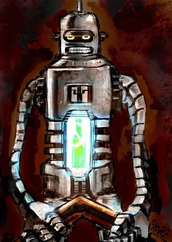 This is apart of a 'Futurama' collection of paintings that will be displayed at my art show at the Mercury Cafe on Queen Street East at Carlaw Ave. in Toronto in February, 2007.This is part 1 of 2 - from the episode 'Three Hundred Big Boys'.
