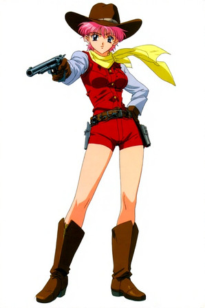 My first trace in Illustrator. Anyone still using Photoshop for vector HAS to try Illustrator. You get stuff done so much faster.Anyway, vector trace of Milfeulle from Galaxy Angel. Original image captured from a season 2 episode. I'm not 100% happy with the gun, but any more work on it would have put in hospital due to stress.