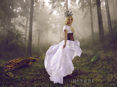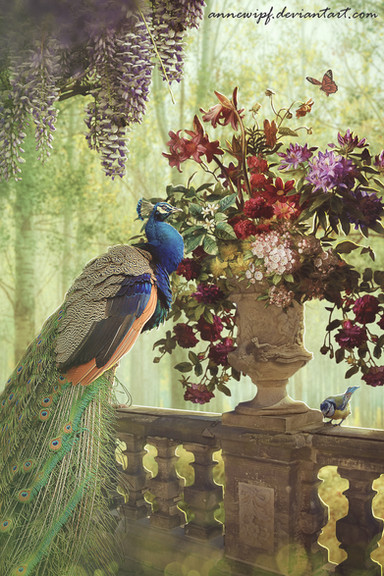Gorgeous, simply gorgeous! Everything about this picture fits; the colours, the pose, the balance of elements. Love the peacock! What a gorgeous gallery you have.