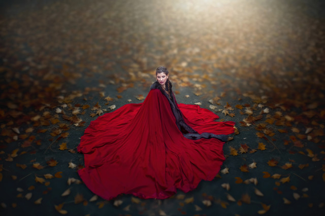 Love your use of the colors here, mirroring her cape.Β Beautifully done!