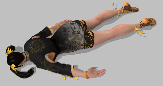 Chun Li lies face down on the floor, wearing her training outfit.Model by Chrissy-Tee . Show them some support on their Patreon!