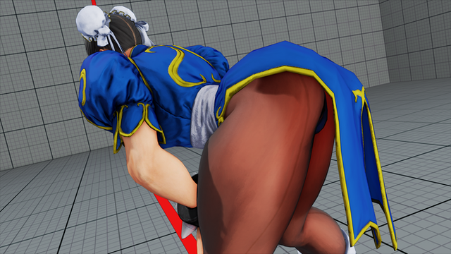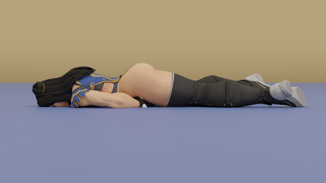 Chun Li lies face down on the floor, wearing her training outfit.Model by Chrissy-Tee . Show them some support on their Patreon!