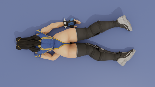 Chun Li lies face down on the floor, wearing her training outfit.Model by Chrissy-Tee . Show them some support on their Patreon!