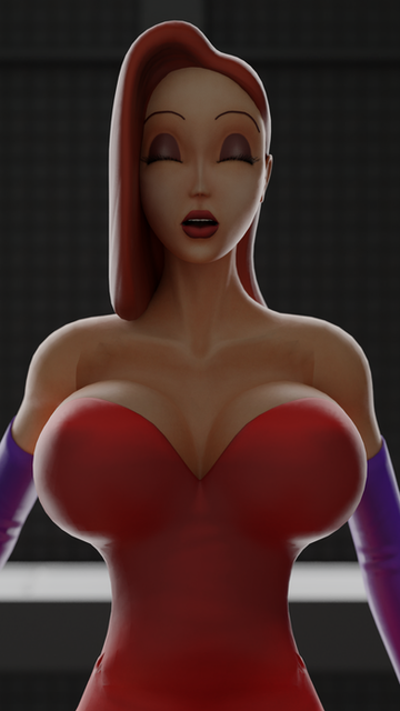 Jessica Rabbit lays unconscious on a table, bent over onto her face.Model by dawadd