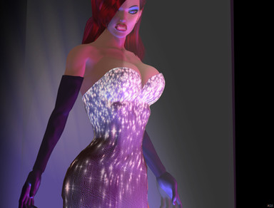 Jessica Rabbit lays unconscious on a table, bent over onto her face.Model by dawadd