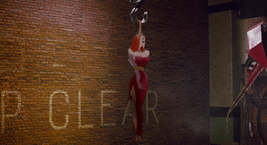 Jessica Rabbit lays unconscious on a table, bent over onto her face.Model by dawadd