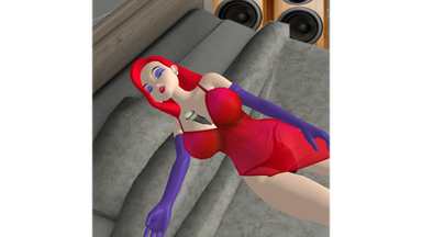 Jessica Rabbit lies face down on the beach.Models