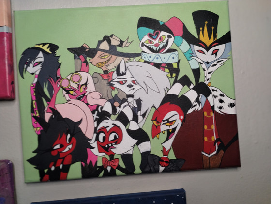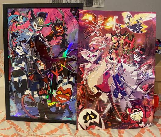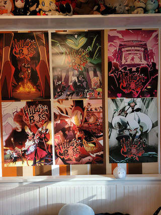 Bunch of Hazbin Hotel and Helluva Boss posters arrived sooner than expected, and I framed them on the wall...... but didn't account for the frame size (22 in width) when mounting so it's very tight until I get smaller width frames.