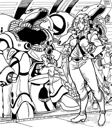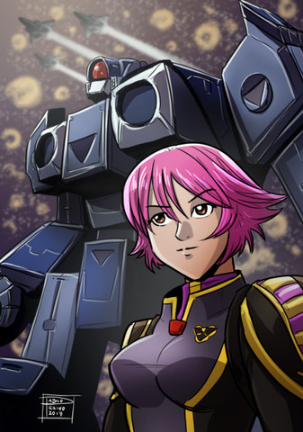 Gundam Seed and Robotech Shadow Chronicles referenced here (yes, that is a custom Aegis Gundam and a REF SC Logo on the girl´s shoulder).