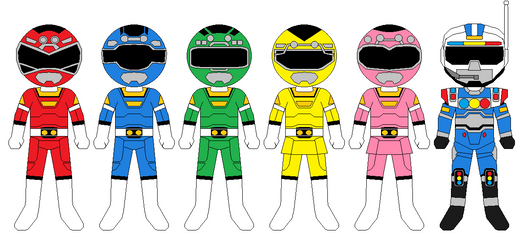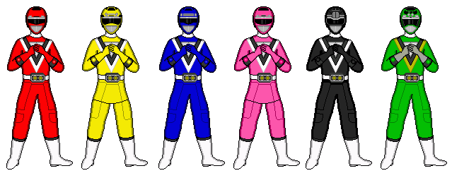 What I did to create this team's suit, was that I simply combined the suits from Power Rangers Turbo/Gekisou Sentai Carranger, with the helmets from Kousoku Sentai Turboranger. Plus, I added the sweet addition of a sixth Ranger, the Green Ranger.