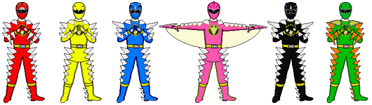This is a team of Power Rangers that I created, many years ago, called "Power Rangers Neo Beasts".The premise is about a good hearted alien robot, who runs away, trying to protect a mysterious power, from an enemy team of cyborgs who wants to conquer the galaxy. The alien robot finds five animals… The falcon, lion, dolphin, rhino, and bison and targets each one to inject a hidden power, in times of danger. Soon, the robot plays dead when the evil cyborgs shoot him down. Soon, a couple of years later and five friends, who are in high school, are going on a field trip when they are attacked by the same alien threat who tried to find the powers. Two of the friends get captured, and the remaining three accidentally discover a hidden passageway, leading to the same alien robot who hid the powers some time ago. He chooses the three of them to become Power Rangers: Neo Beasts, inhabiting the traits of the selected animals and using alien technology and robots to fight off this evil and save both their other friends and the Earth. Later, the two other friends of the Rangers joins the team, as the Black Ranger, and the Green Ranger.