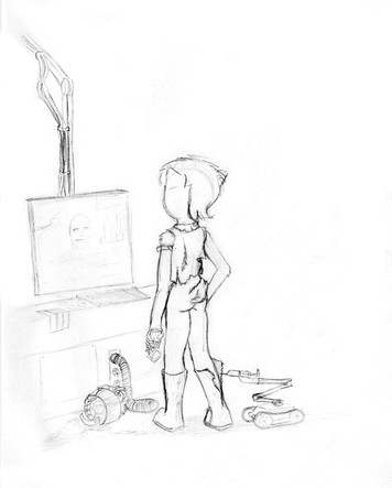 A nerd girl working on a robot. I started this at my house, it needs inking and colouring.Related content