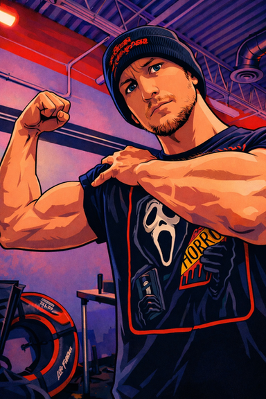 #darkportrait #discipline #neonblue #observed #psychological #selfportrait #tension #vhs #bodyasart #nightgym #analogmood #musclecore #horroradjacent #artistbody
