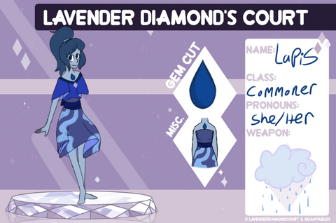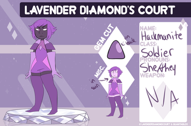 After tinkering around more and more, she decided she didn't want to be stuck as a simple technician, and left to another Empire, one more accepting, the court of Lavender Diamond. Though she expected some disregard of her, she found Lavender Diamond to be respectful and kind, shattering her previous prejudice against Diamond's. She was then sent to a planet in need of technicians, Rhodocrosite's Planet.