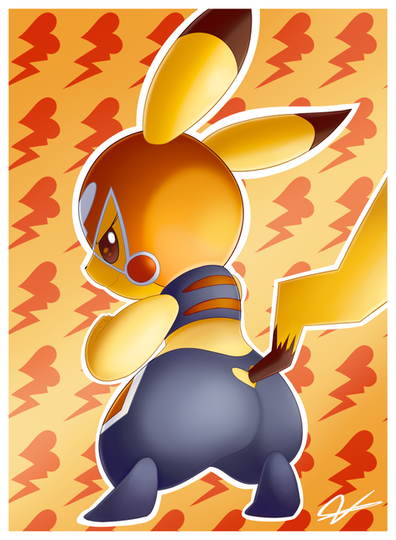#backside #butt #cute #mouse #pokemon #raichu #rear #tights #wrestler #heart_tail #raichu_libre