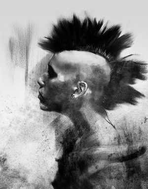 Charcoal Line drawing softened by water brush for a general blueprint of details and and tones.
