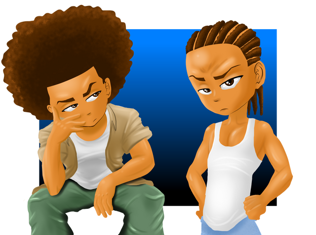Anywho, Huey (the kid with afro) and his brother Riley from The Boondocks.