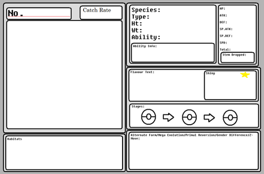 Well... This is a classification layout for my fakemon... I will add colors later, but before that happens any changes I should make?????? Please I need a little bit of feedback... and be honest!