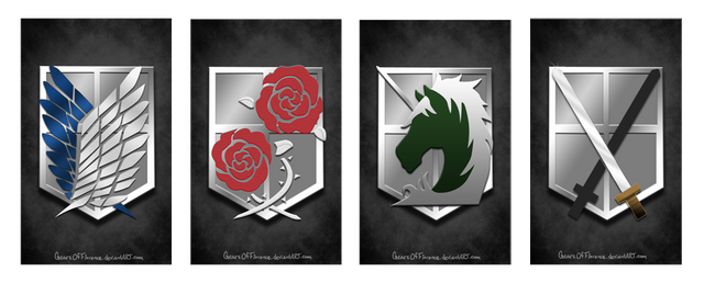 Made my versions of the military emblems in Shingeki no kyojin : DThese are available as stickers in my store as well...