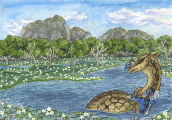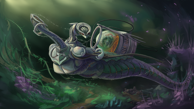 This is really cool! I love the little details, like the tools in the snake-like creature's pockets. And I really like the environment you created to place them in! I love your art style!