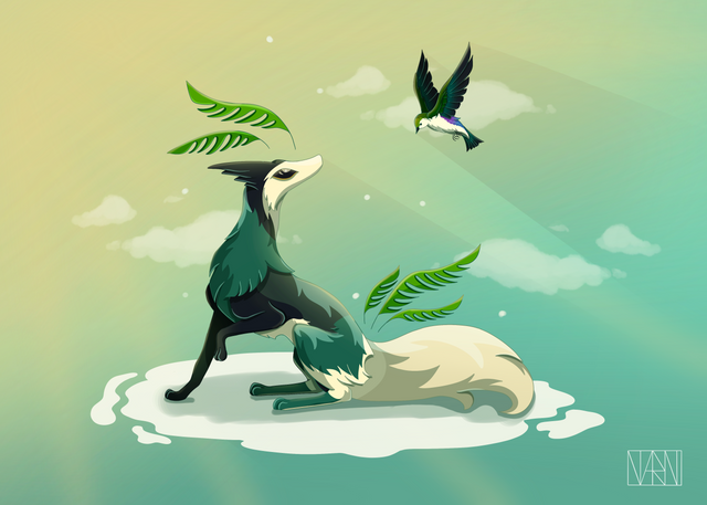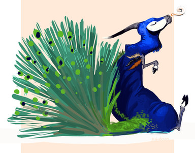 Riikin got new peacock wings and plumage from the last Summer event as rewards. And yeah... you can see that I'm making him even more hard to draw. Rip.