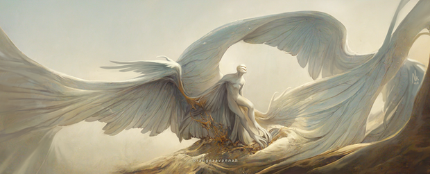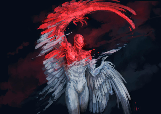 I mean this whole piece is amazing, but the way his wings look and how the whole composition works with it, is just stunning.