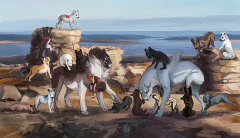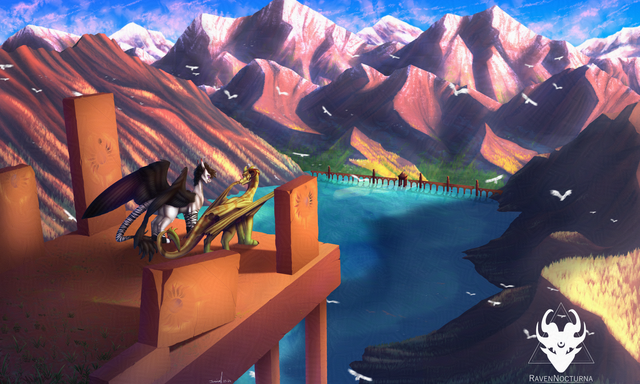 Oh jeez. I put all my time on the damn background that the loons came out.. well the way they are x'DPresenting LisaCat 's Nyota and my Ramses enjoying a nice view! I had planned to draw this some time ago but only now got a good enough idea for the scene.