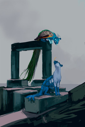 omg it's so beautiful!!! Thank you so much for drawing Nyota - and that background is stunning!!! (also perfect since I need to draw Nyota taking some swimming lessons ;D ) Ramses and Nyota can help each other pick out jewelry the next time they find some new shinies! ^_^ (as long as Ramses isn't eating all of Nyota's stuff >.> that won't endear him to her <.< )