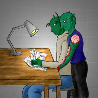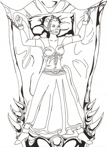 This is a commission my mother and I did for someone at A-kon. She did the basic pencil-work and then I lined it.It was an interesting sort of commission ... bondage without being harsh. Restraint and fetish as more of a fashion statement ...
