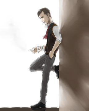 And yeah, I hadn't quite noticed it until I read it from MigraineSky (and because I was thoroughly staring at the background, if only because of my ridiculous lack of patience in doing them myself XD) but yes, the shadows would fall a little differently on Holmes' body...not a huge deal at all though. I quite like it.