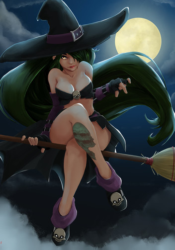 This witch is my favorite right now. Sexy, but she is super cute too; it's all in her expression. Well done, a great character.