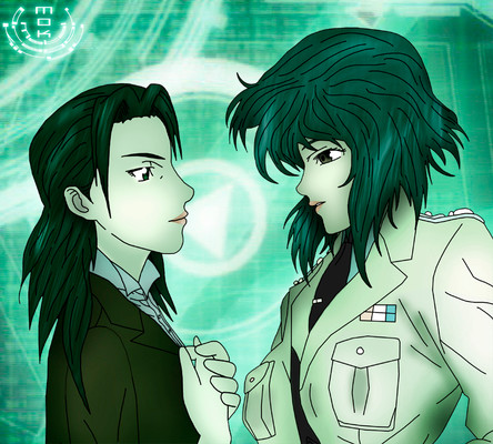 Right, this is a rather complicated character. She was created by me and a friend to appear in a GITS: SAC Webcomic (that I am still working on). Her name is Alice (in case you hadn't already guessed), she started life as just another Section Nine Operator. But under circumstances completely unknown, when the other operators were deactivated, she stayed online, and after extensive testing, was discovered to have gained a 'ghost'. After this, she was assigned different duties, as well as given a new uniform to distinguish her from the other operators (for those of you who don't know, the others have pinky-red suits) After a while she befriended Major Kusanagi, who was probably only willing to spend time with her as up until then, she was the only woman in Section Nine. But soon after their meeting, something sparked in the Major, and she began spending more and more time with Alice, until - you guessed it - they end up dating. AwwwRelated content