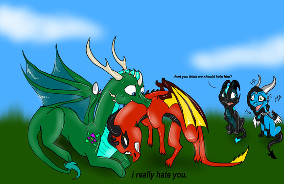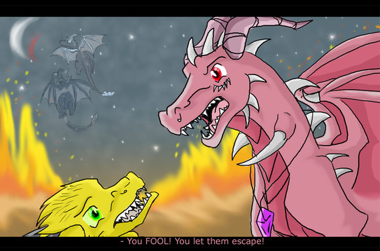 His blue savior turned to him, revealling light green eyes. She was still a teenager. "Did she hurt you badly?" she asked gently. Harking nodded and closed his eyes. "May I ask you something?" he said, with fainting voice. "Sure..." replied the dragoness with a worried look on her face. "What is your name?" Harkin whispered. He wasnt sure she even heard him. Before he fell unconscious from the blood loss, he heard her say: