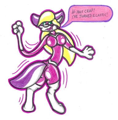Gift for for all the art he's done of my characters.Viga has taken a shine to capturing rubber animals in her ring, and poor Gerard was no exception.Β Spotting a perfect chance she captured the poor fox in her ring transforming herself into a rubber vixen.Β Naturally she enjoys the new look and it seems that Gerard enjoys the view as well.