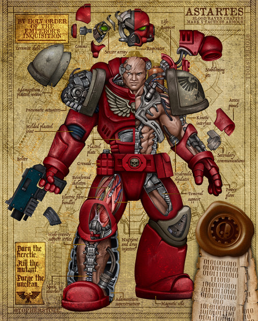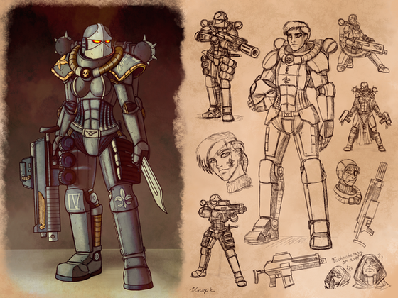 Another re-imagining Warhammer 40.000 armors.This one is a more traditional approach to the Tactical Dreadnought armors, less "Dreadnought" than my last one [link] and more similar to the traditional Power Armor.