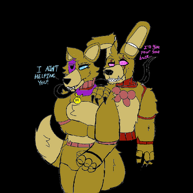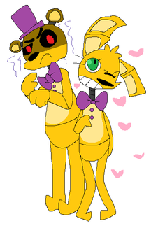 yey... Here's another ship-pic. I haven't done any of these lately, and I finally created Charlotte's animatronic form, and recreated Bill's animatronic form as well. I am recreating Charlotte's wolf/animal forms, for the fur/feathers to match her hair color, but the wolf redesign will come first.Base used: FnaF base 2 by adusia2208