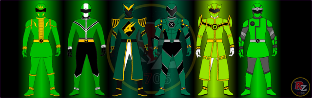These are all the Green Rangers Sentai that I've drawn and uploaded on my Deviant. Green Slash also charges Green Ranger and Extra Ranger.