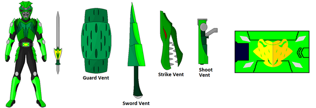 Slash Ranger based on MMPR Green/Dragonranger. He was the only ranger who came from outside Japan. He is initially quiet and shy, but after being exposed to the power of the green Ranger Core he becomes aggressive and confident.