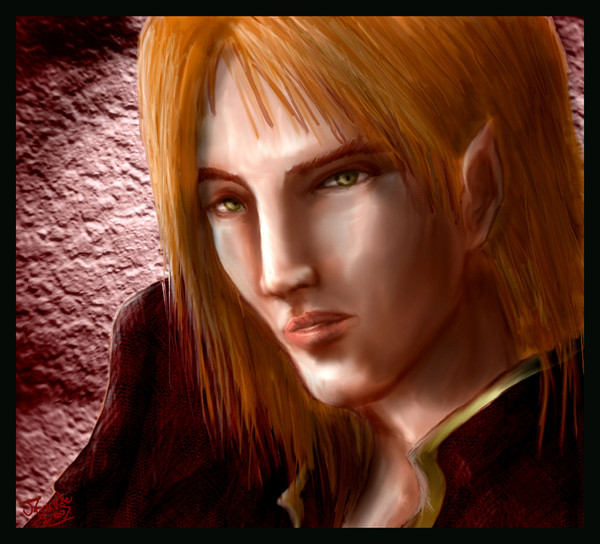 Well The hair is absolutely great but do you know what is destroying the handsome appearance for me (In my opinion) I think that if you changed the shape of the eyebrows it would be more better or by other way it would have shown his emotions more and I think that the grin is so weird it is making him look weird to be honest and I horay you for choosing that skin tone because it really fit him and in the other time you draw an elf (as an advice) It would better if you made it more sharp or by other way more tall,thin and pointy from the end neither than that IT IS AWESOME
