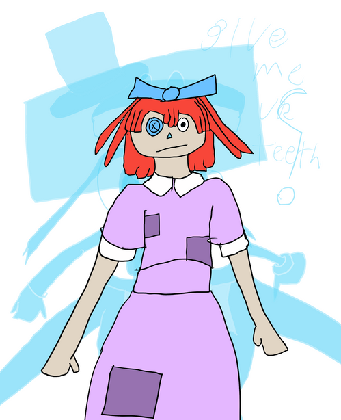 I was trying out a new style on paintchat. Turned into a Raggedy-Anne ripoff OC.I have a shit ton of more crappy doodles of her.