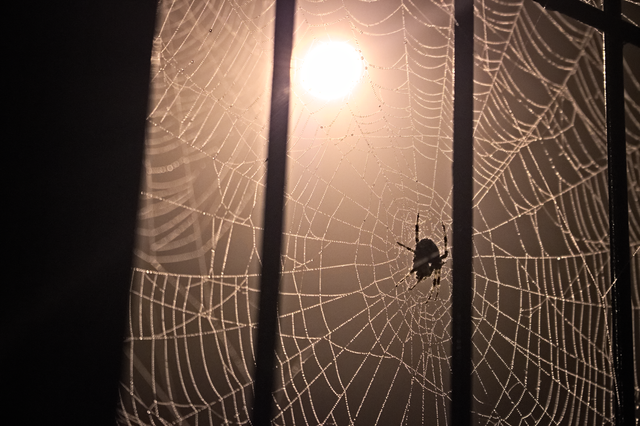 I love this. the spider almost looks villain like with the light behind it and only being able to see its silhouette. Lovely!
