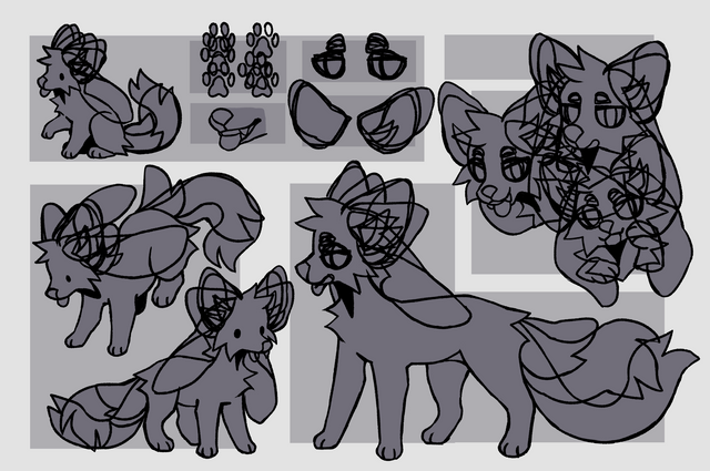 Chibi Fox linework with tail and ear variations$1/100 points