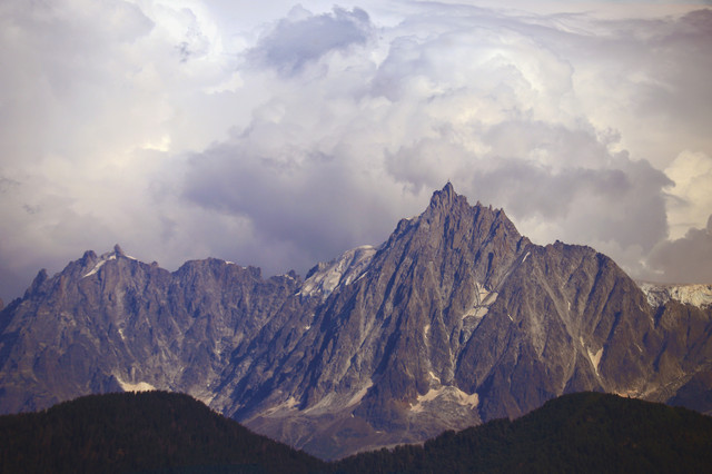 3 classic summits in the French Alps from the center to the left:L'Aiguille Verte (the white summit at 4 122 m )