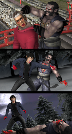 "Nah, not yet," Salina said. "You just blinked. Like I said before, you're getting slow old man." Drain moved forward and Salina flipped downward driving her heel onto the top of his head before landing in front of him. Drain stumbled to the side and brought his sword up again as Salina made a stance. Drain rushed forward swinging his sword downward, but Salina's clasped her hands together catching the blade.