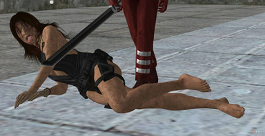 "Here I come!" Salina shouted as she suddenly came in from the side. Drain turned around bringing his sword up blocking Salina's kick. He pushed backward against her throwing her off. Salina flipped backward catching herself on the wall."You can teleport again?" Drain asked.