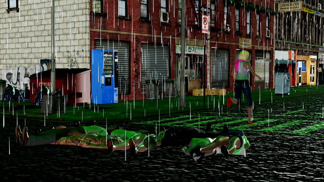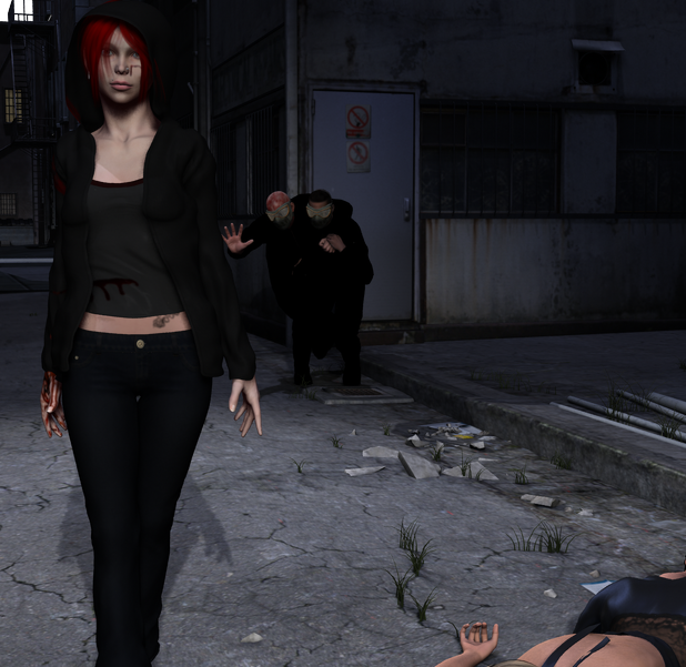 "Your welcome!" Scarlet sarcastically called after the running woman. That was the third victim I have saved tonight, she thought to herself. She then knelt down and rolled over one of the bodies. Zombie, she muttered to herself, thought so.