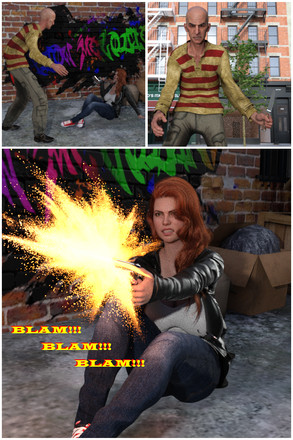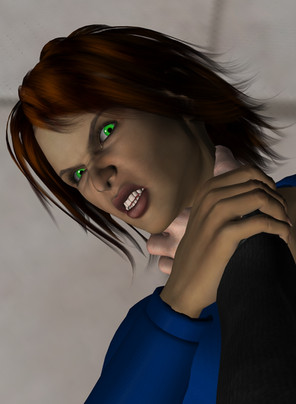 Scarlet stood still for a moment then moved forward, grabbing Mr. Solan by his suit, and thrust him against the wall, causing nearby nurces and patrons to shriek and back away."Scarlet!" Christian exclaimed. Scarlet gritted her teeth in a snarl, revealing her inhuman set of fangs.